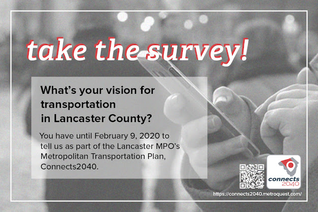 The Lancaster County Planning Commission on behalf of the Lancaster County Metropolitan Planning Organization (Lancaster MPO) launched a new survey at http://lancompo.org/connects2040 …and they want our help.