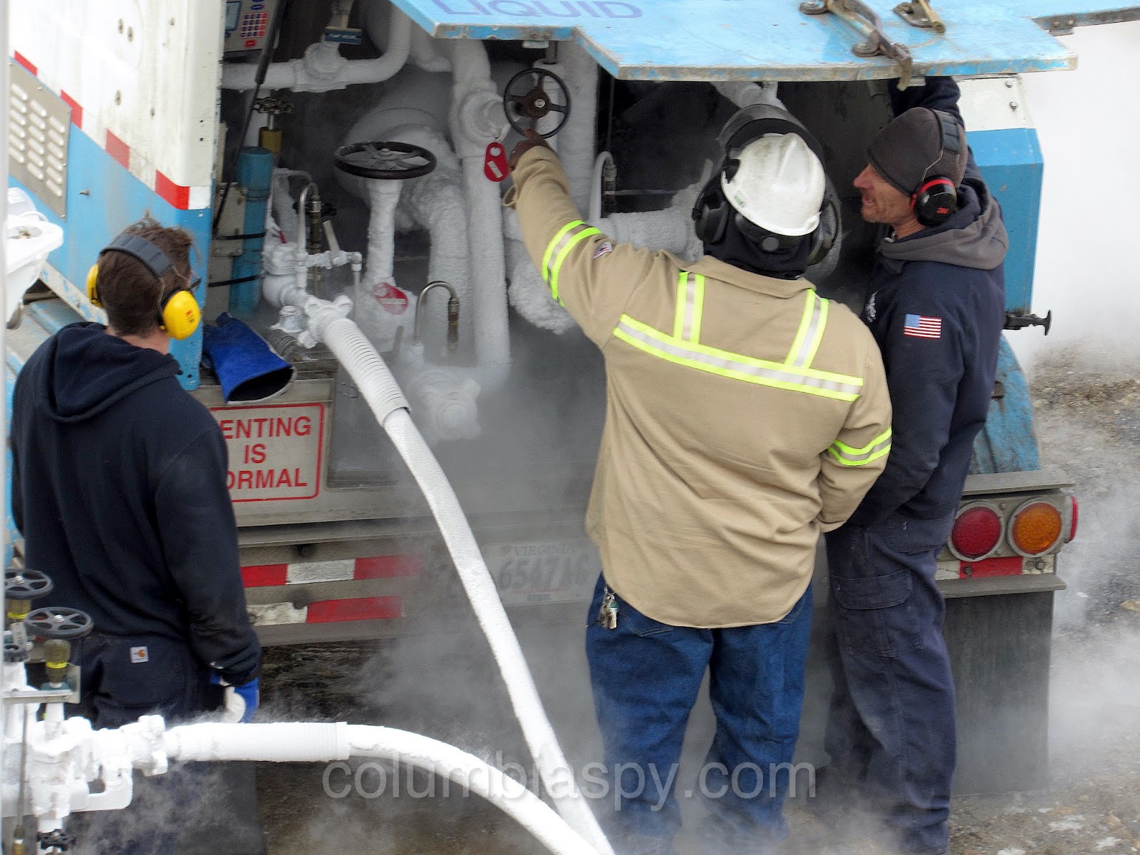 The “something new” is a several thousand-gallon liquid nitrogen tank that was delivered on Friday, shown here being filled that afternoon.