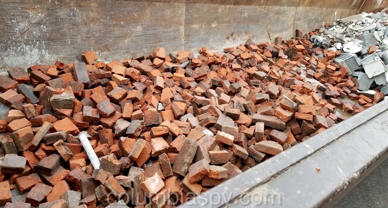 The bricks were skidded up, shrink-wrapped and put out back. Some will be reused.