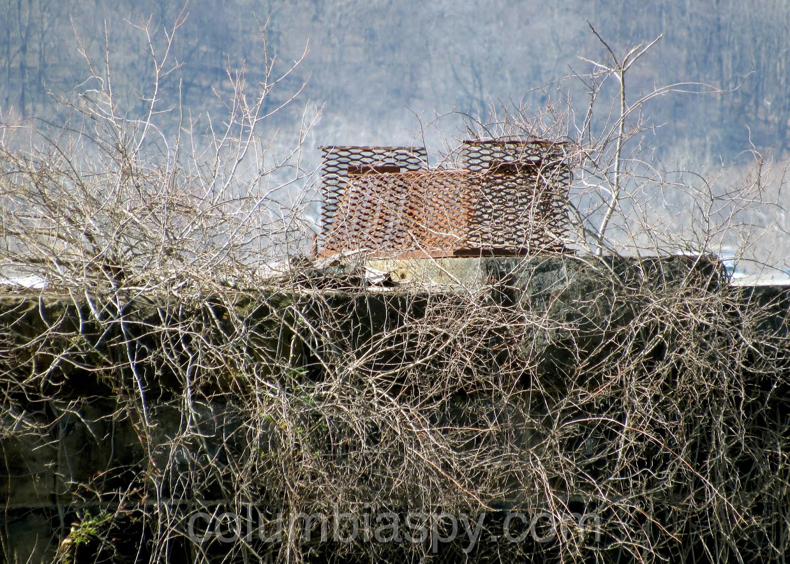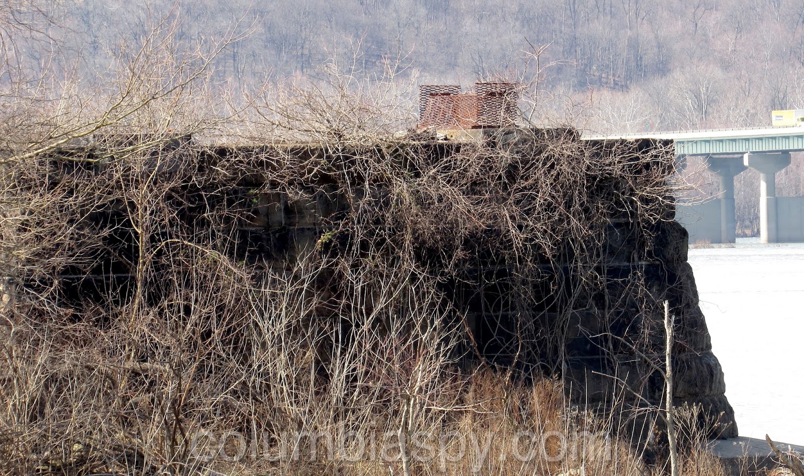 Atop this Civil War bridge pier is one of the braziers placed there by Albert Storm of Rivertownes PA USA. The Chiques Rock Outfitters crew stocked the braziers in 2013 for the 150th Anniversary of Bridge Burning, as Columbia Spy reported HERE.