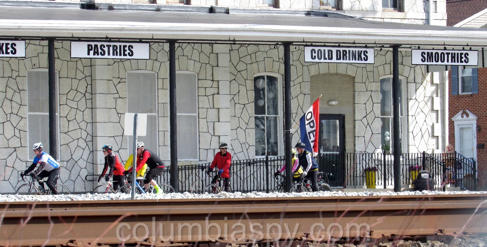 Steps down at the tracks