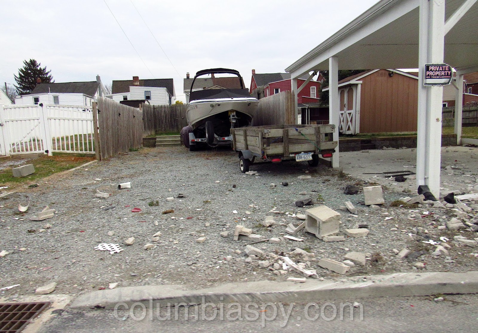 Debris field from last Sunday night’s vehicle accident on Ironville Pike (here and below)