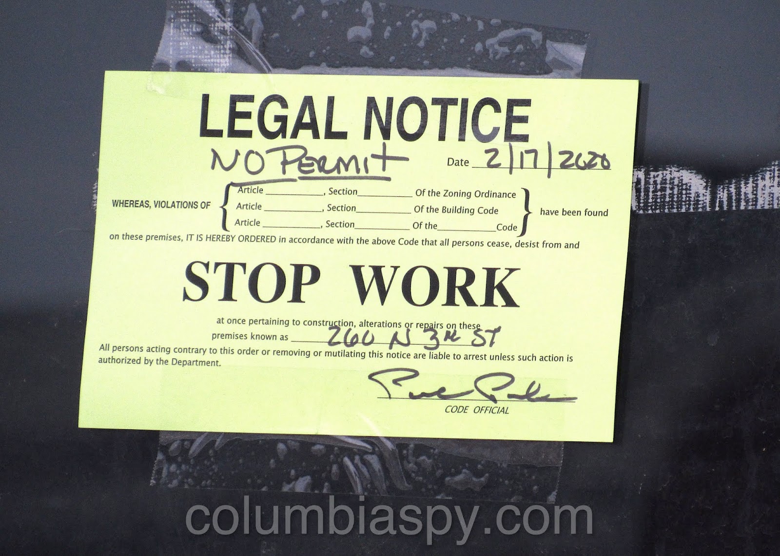 Speaking of permits, none are posted for the work here at 601 Chestnut.