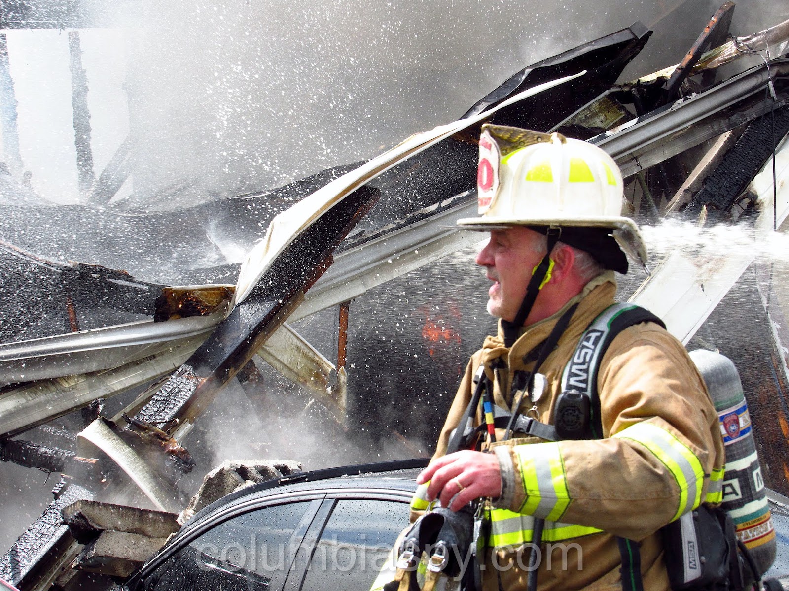 Several departments responded to a fire call at Union Street and Corn Avenue late this morning. The fire reportedly started in a garage on Corn Avenue where several cars are stored. The garage, which is near the Union Street Laundry, has collapsed, and the fire also damaged a neighboring residence and a building with several apartment units.