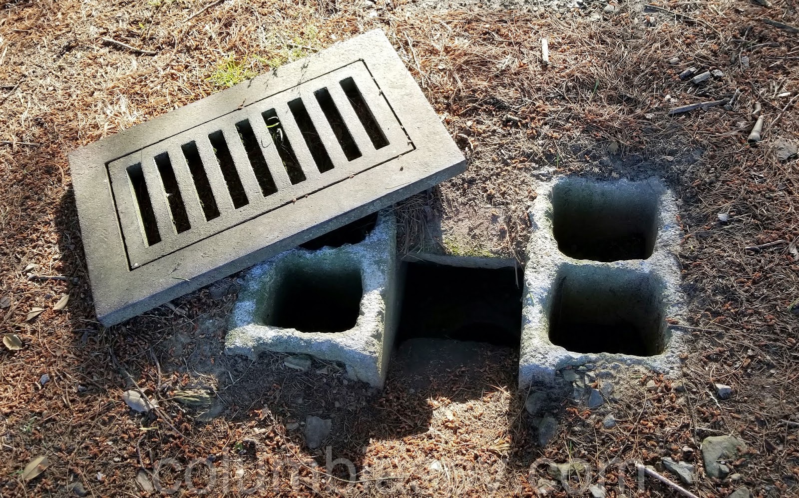 This metal grate over a groundhog hole was moved aside.