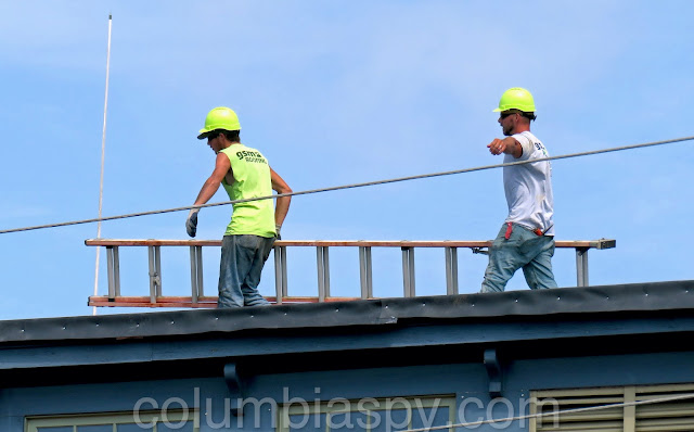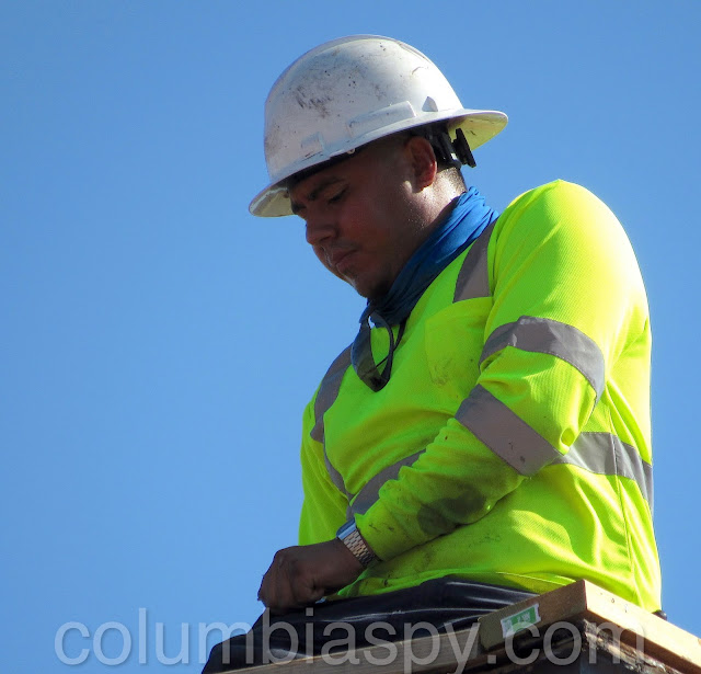 Roofer at work on the 200 block of Locust