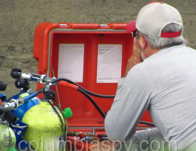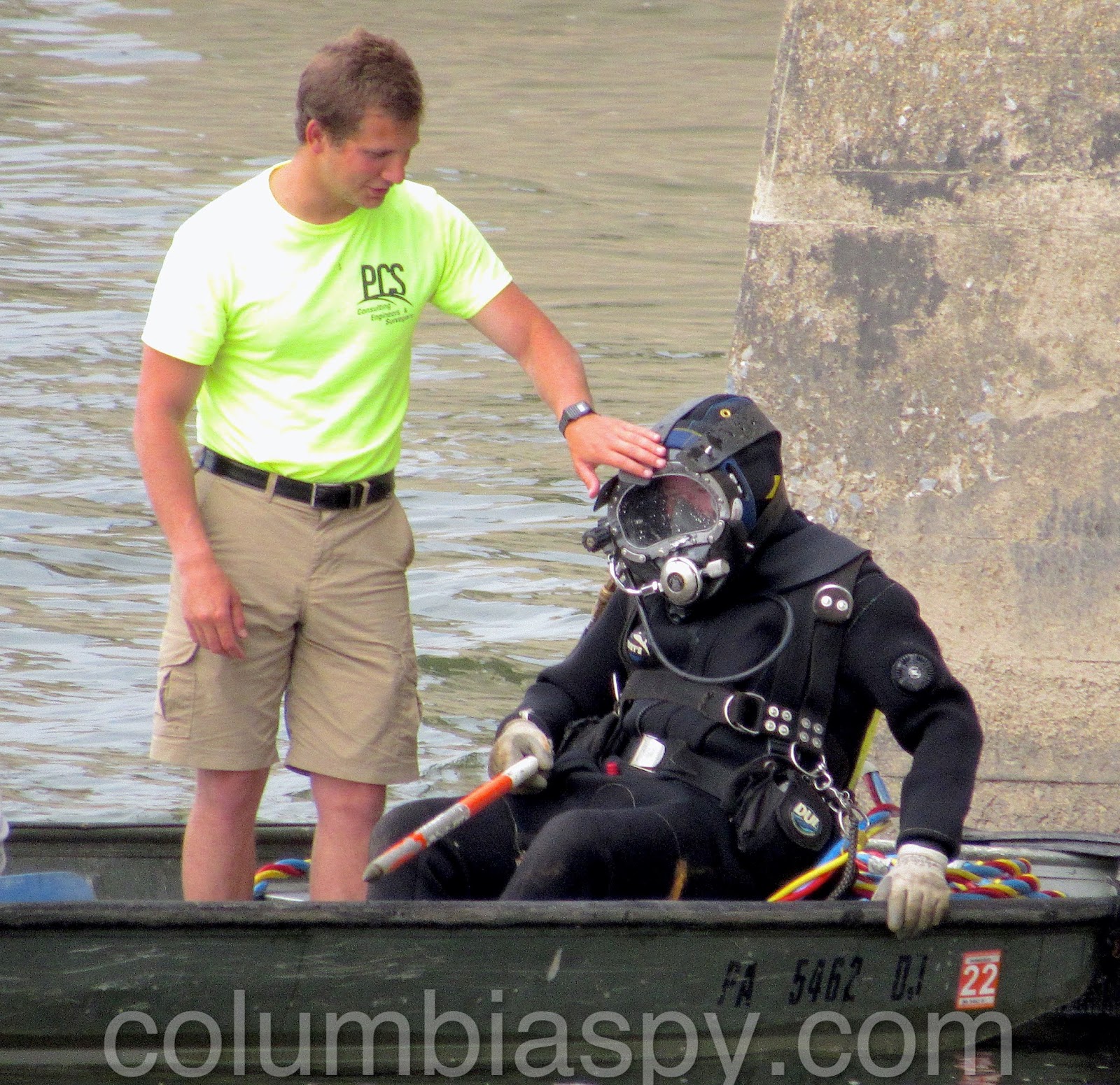 A diver appeared to be doing underwater inspections of the bridge piers.