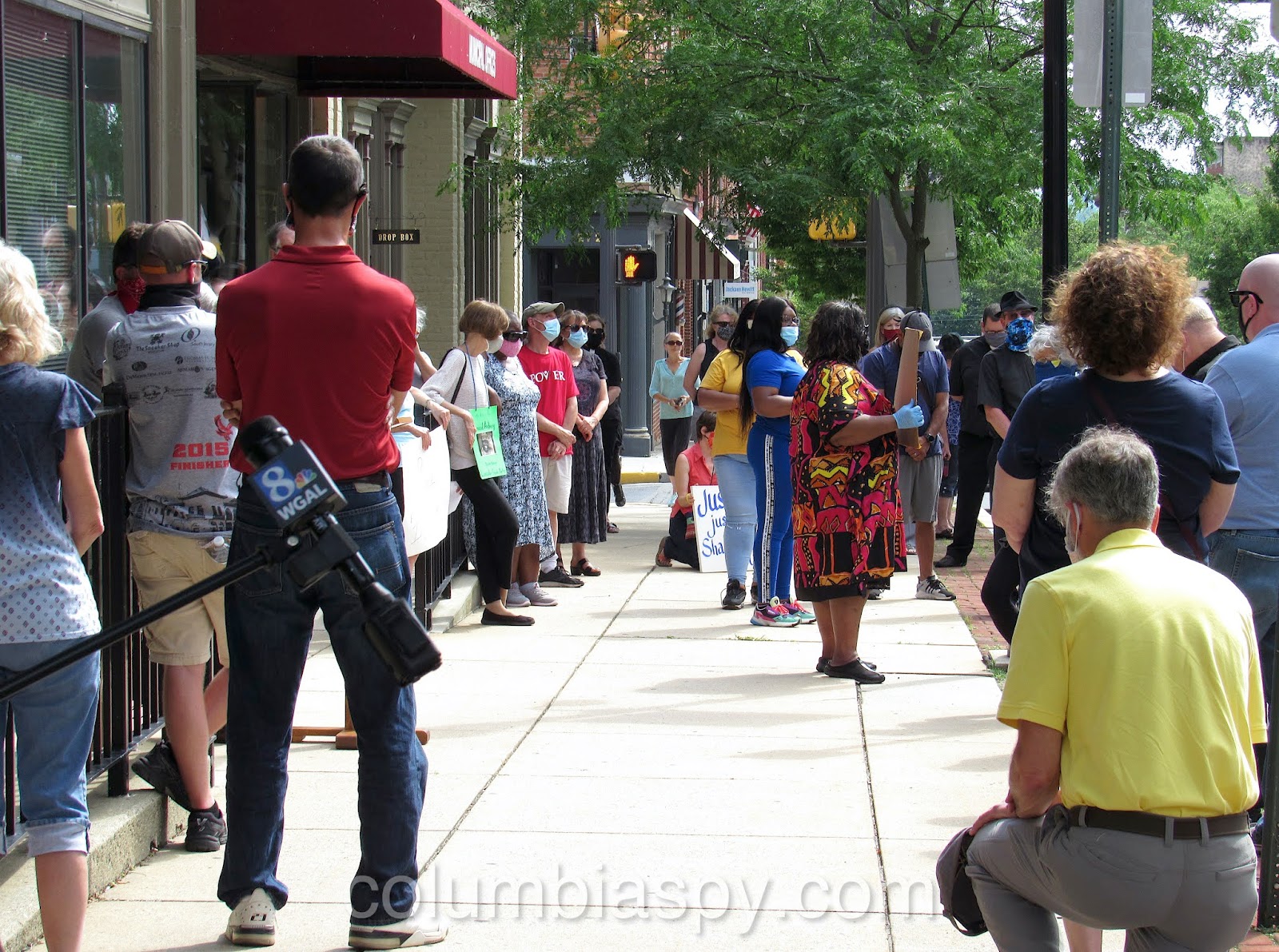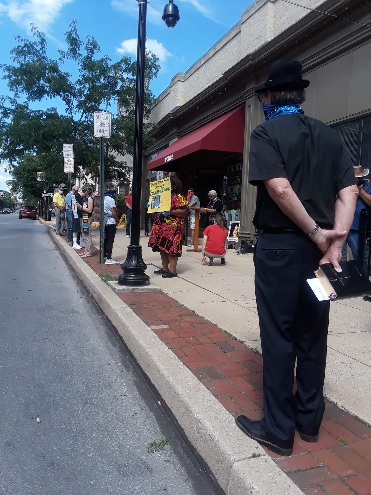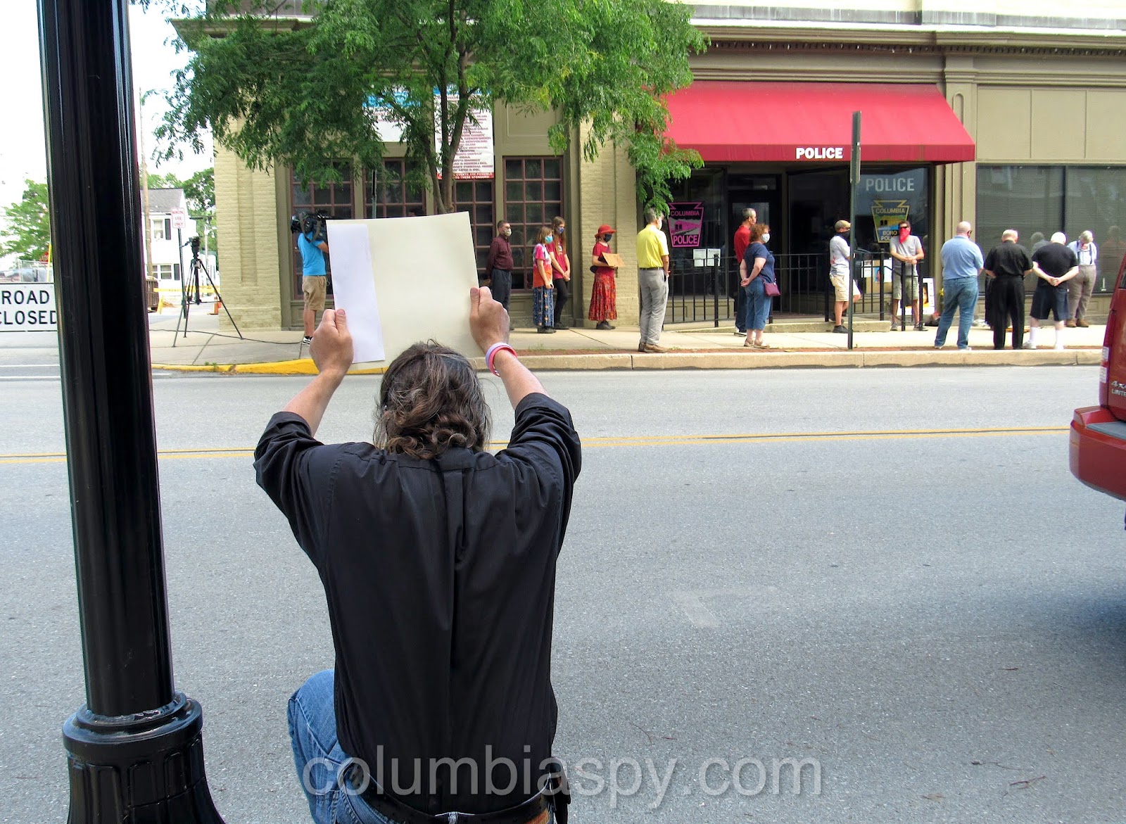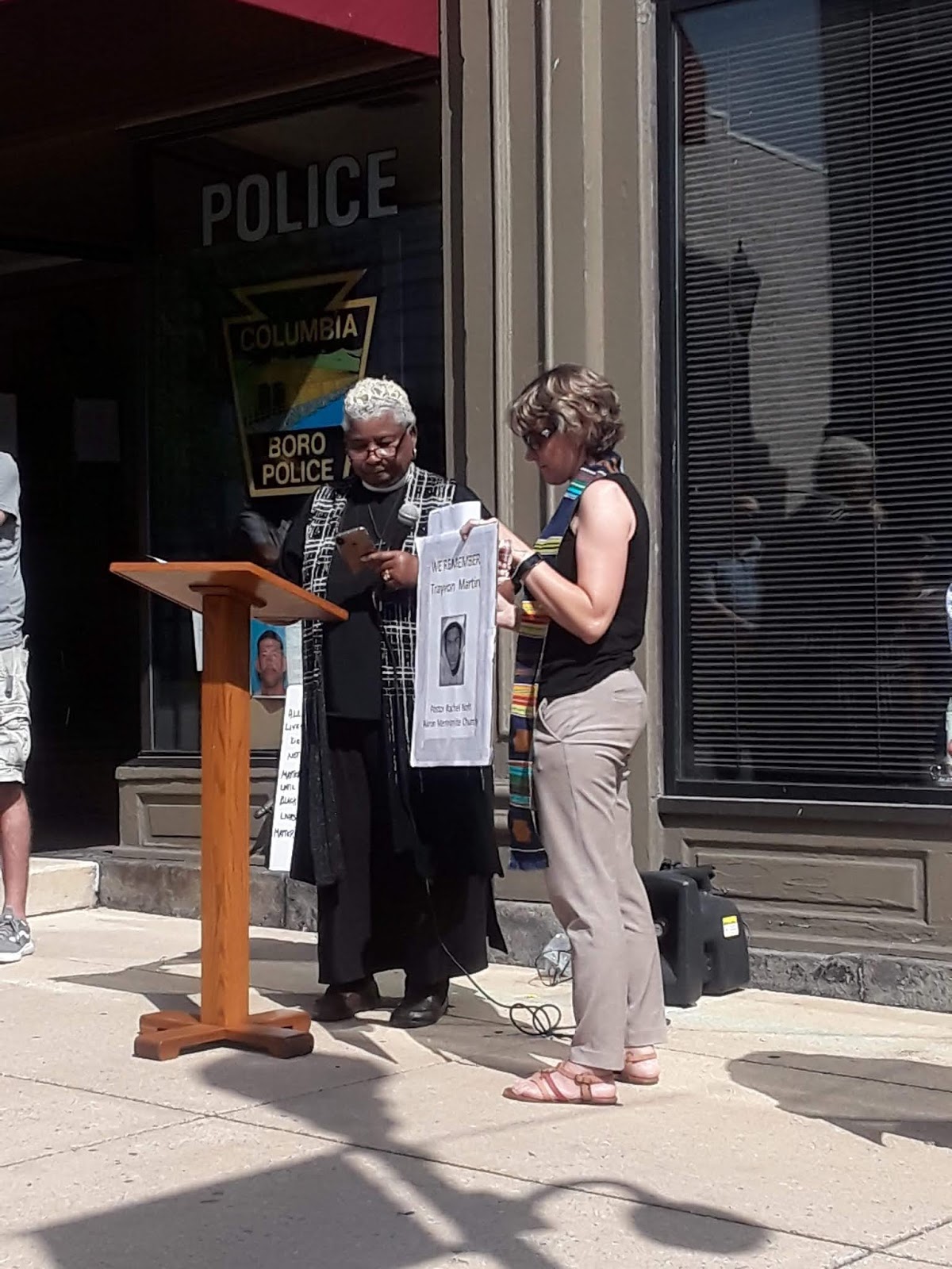 A peaceful prayer vigil organized by “Power Lancaster County” took place at 4 p.m. today in front of Columbia’s police station and borough hall. Over 50 people attended, among them pastors, two school board members and a councilwoman. Some displayed signs remembering those who died at the hands of law enforcement. Pastors addressed the issues of social justice and racial inequality and led prayers.