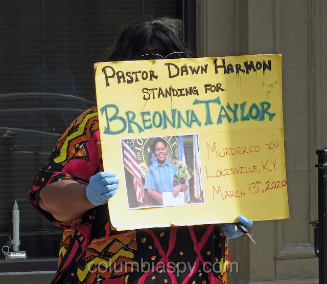 At the direction of Reverend Dr. Patricia McAllister of Columbia’s Mt. Zion AME Church, the group paused for 8 minutes and 46 seconds of silence, the amount of time that Minneapolis police officer Derek Chauvin officer kept his knee on George Floyd’s neck on May 25, ultimately killing Floyd, a 46-year-old black man.