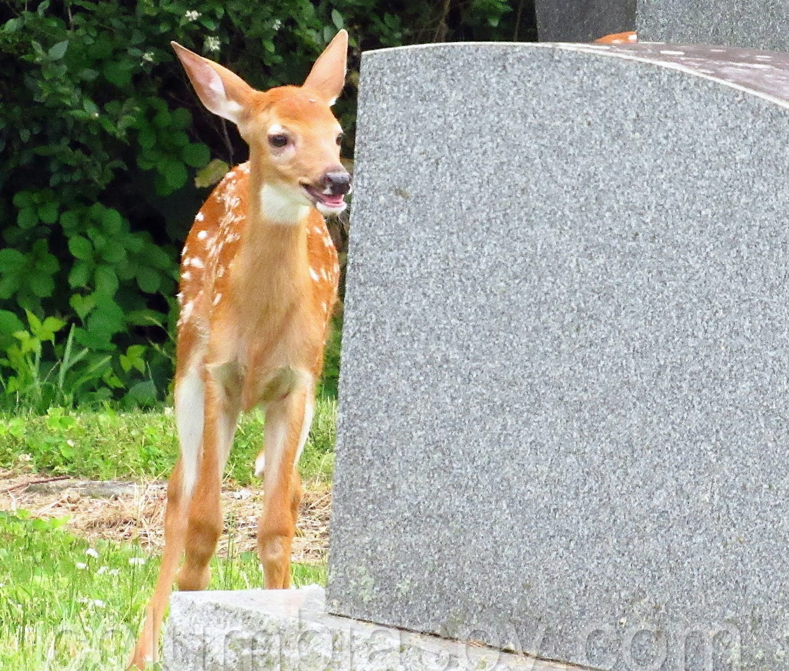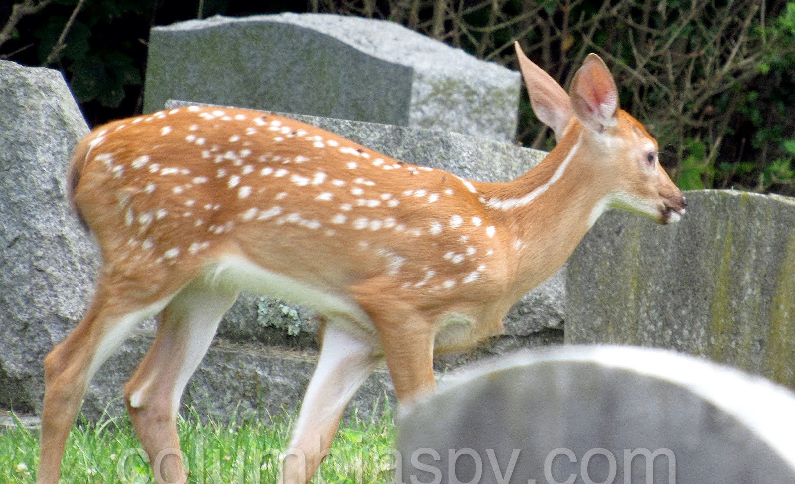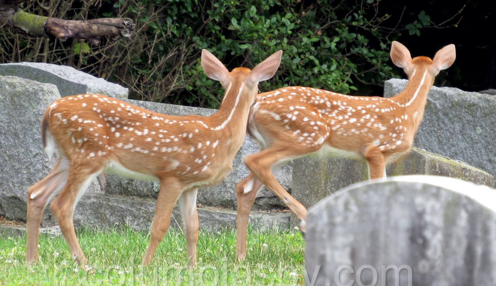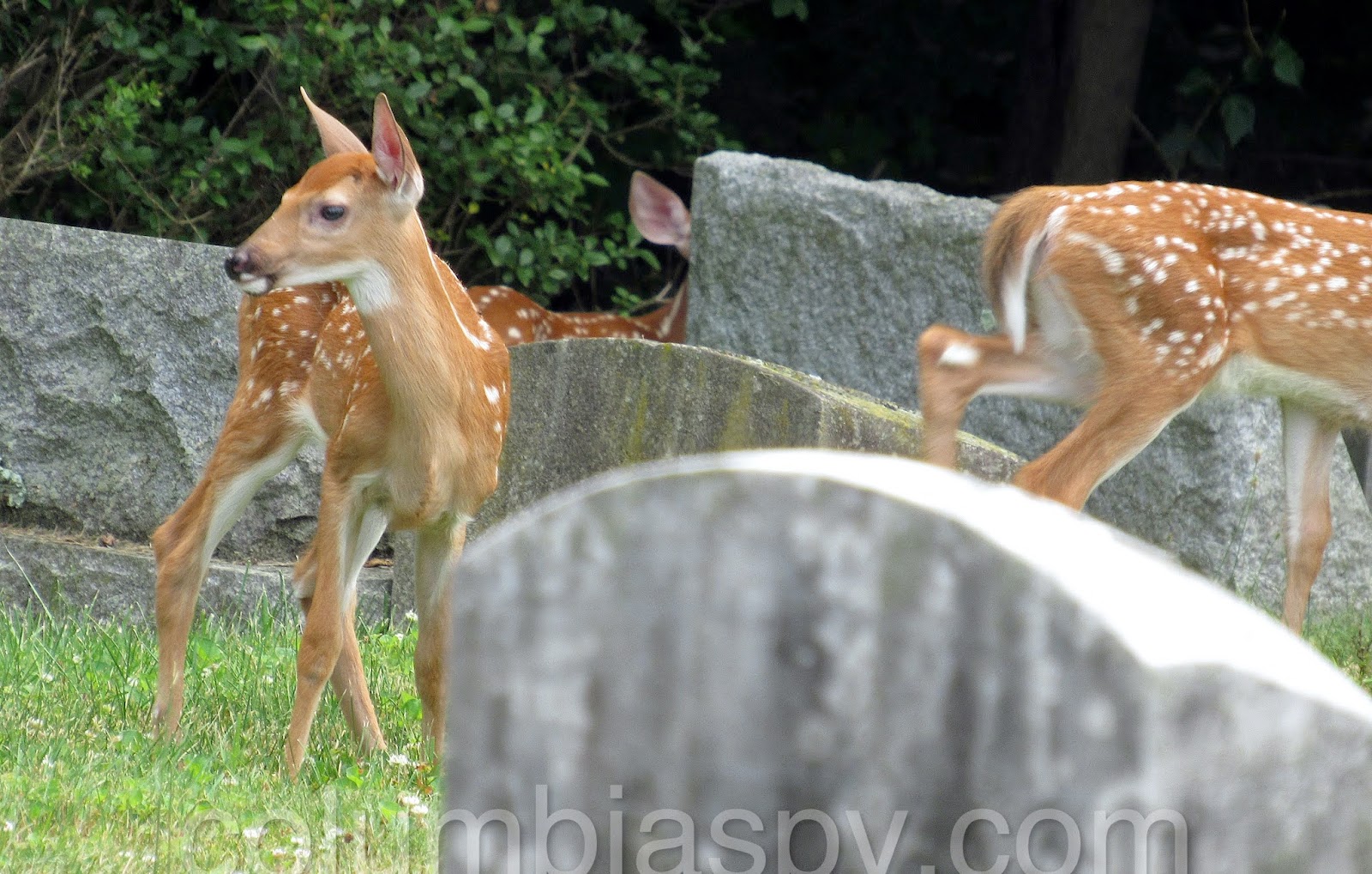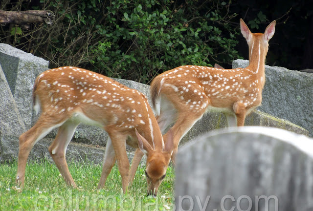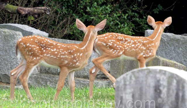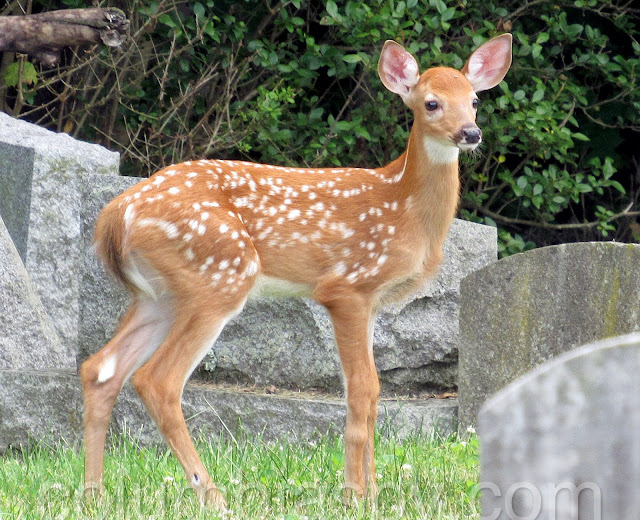 Three fawns visited Laurel Hill Cemetery recently:
