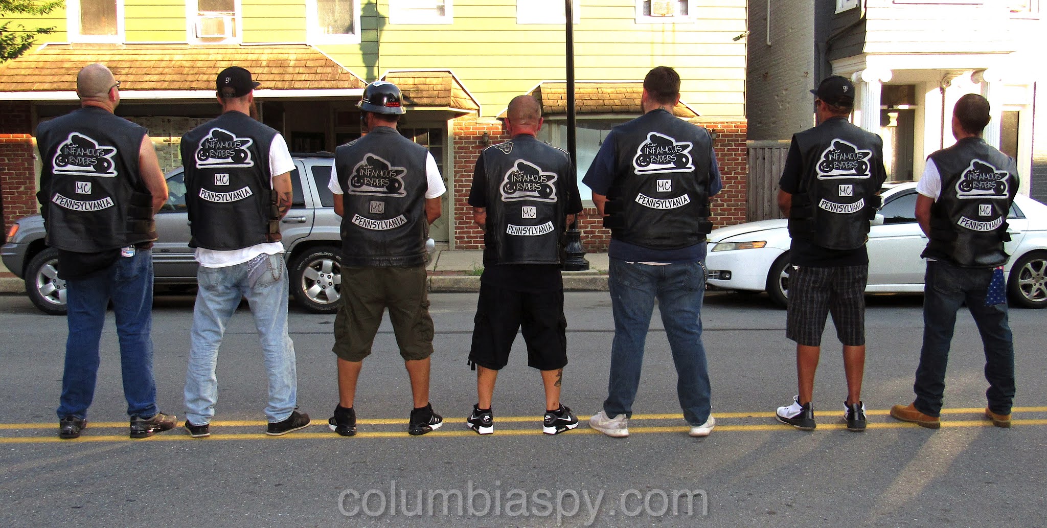 Nine members of the local chapter of the Infamous Ryders motorcycle club cleaned up trash on several blocks of Locust Street Monday evening. “It’s a way of giving back to the community,” chapter president Drew Nyce said. The club plans to do such clean-ups once a month, according to Nyce. (Nyce, a Columbia resident, is also owner of Nyce Tattoos, which Columbia Spy reported on HERE.)