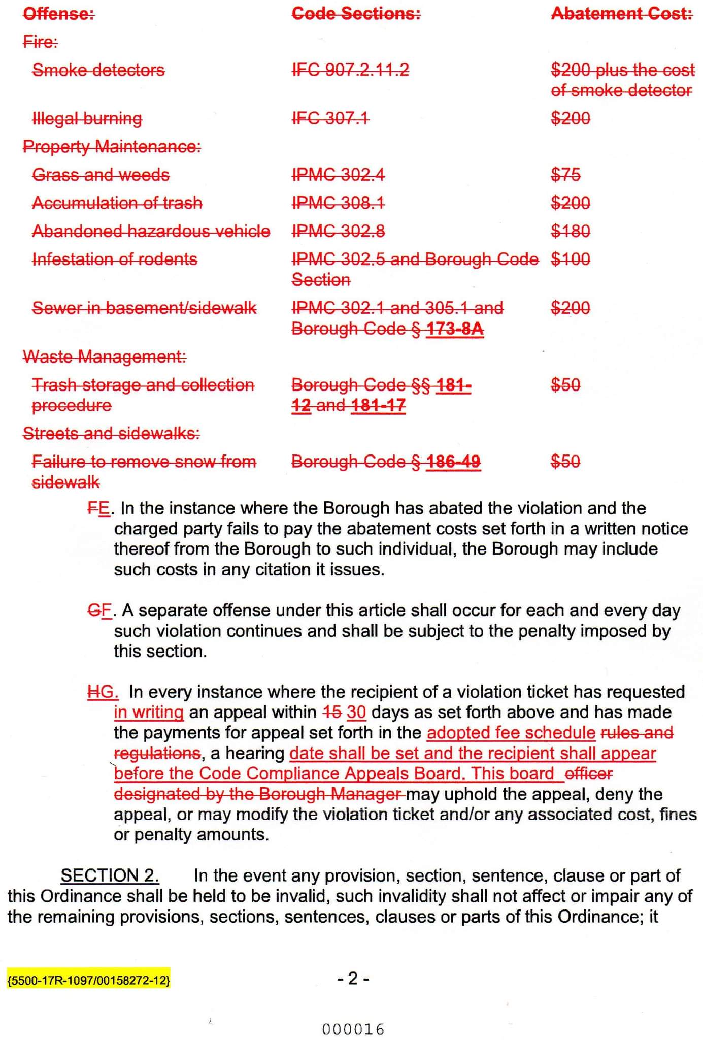 The proposed amendment includes changes in language to avoid potential conflicts and to bring the ordinance into compliance. (See the images below.) In addition, fees will be excised from the ordinance and moved to a separate fee schedule, to be adopted this coming January. The move is necessary because by law, council must amend fees by resolution, whereas an ordinance must be amended via another ordinance.
