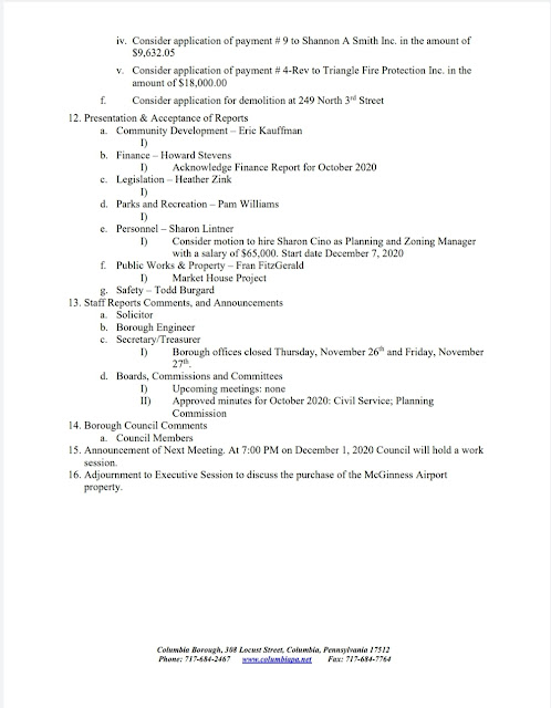 Agenda – Columbia Borough Council Meeting – November 24, 2020 Download the 183-page council packet HERE. Share this: Click to share on X (Opens in new window) X Click to share on Facebook (Opens in new window) Facebook More Click to share on Bluesky (Opens in new window) Bluesky Click to share on X (Opens in new window) X Like Loading... Related