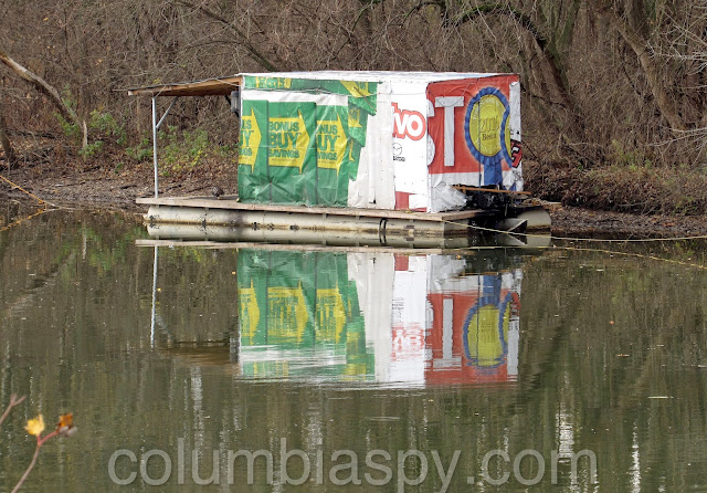 Some sort of makeshift boat was moored just offshore in Washington Boro.