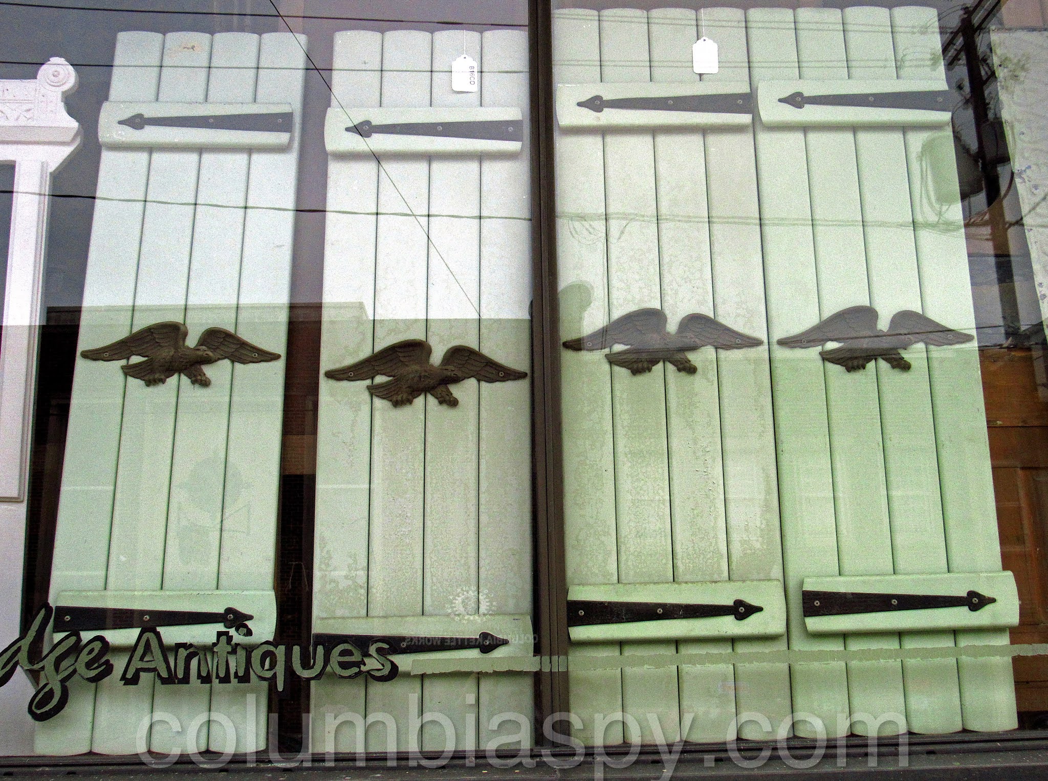 in the window at Burning Bridge Antiques.