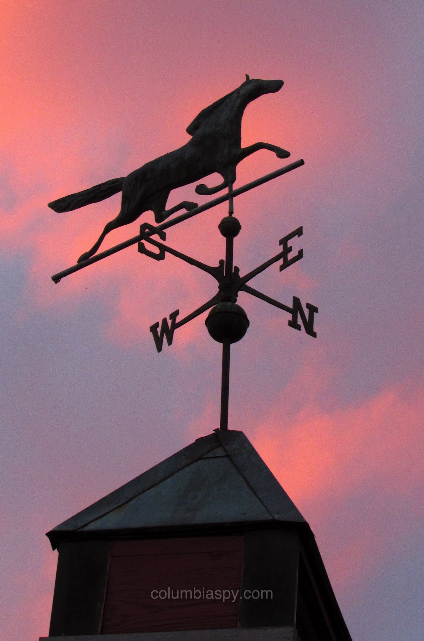 Weather vane, with sky aglow