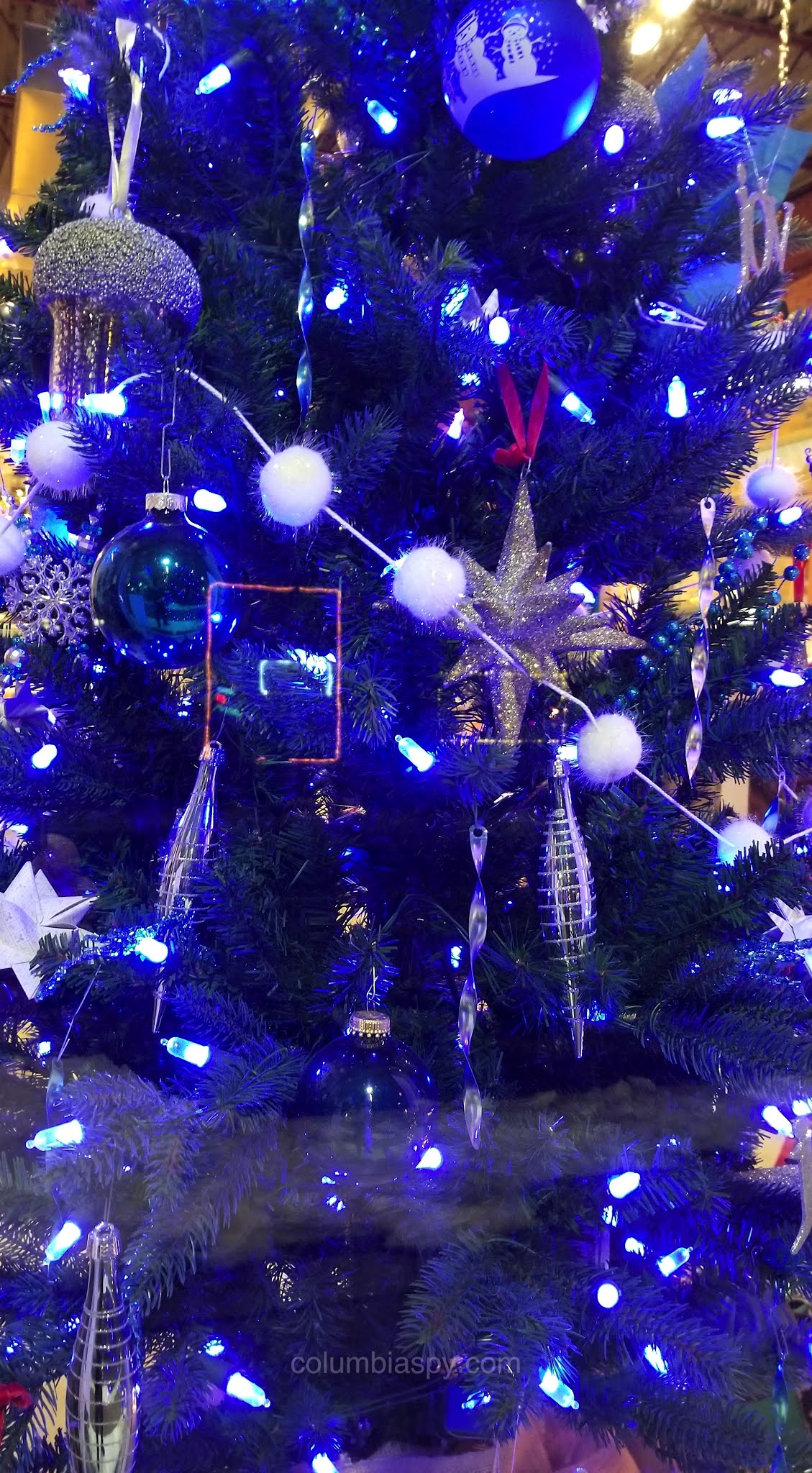 Here are some bluer-than-blue lights at Kindred Collections on the 400 block of Locust.
