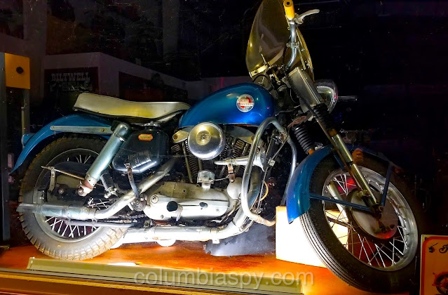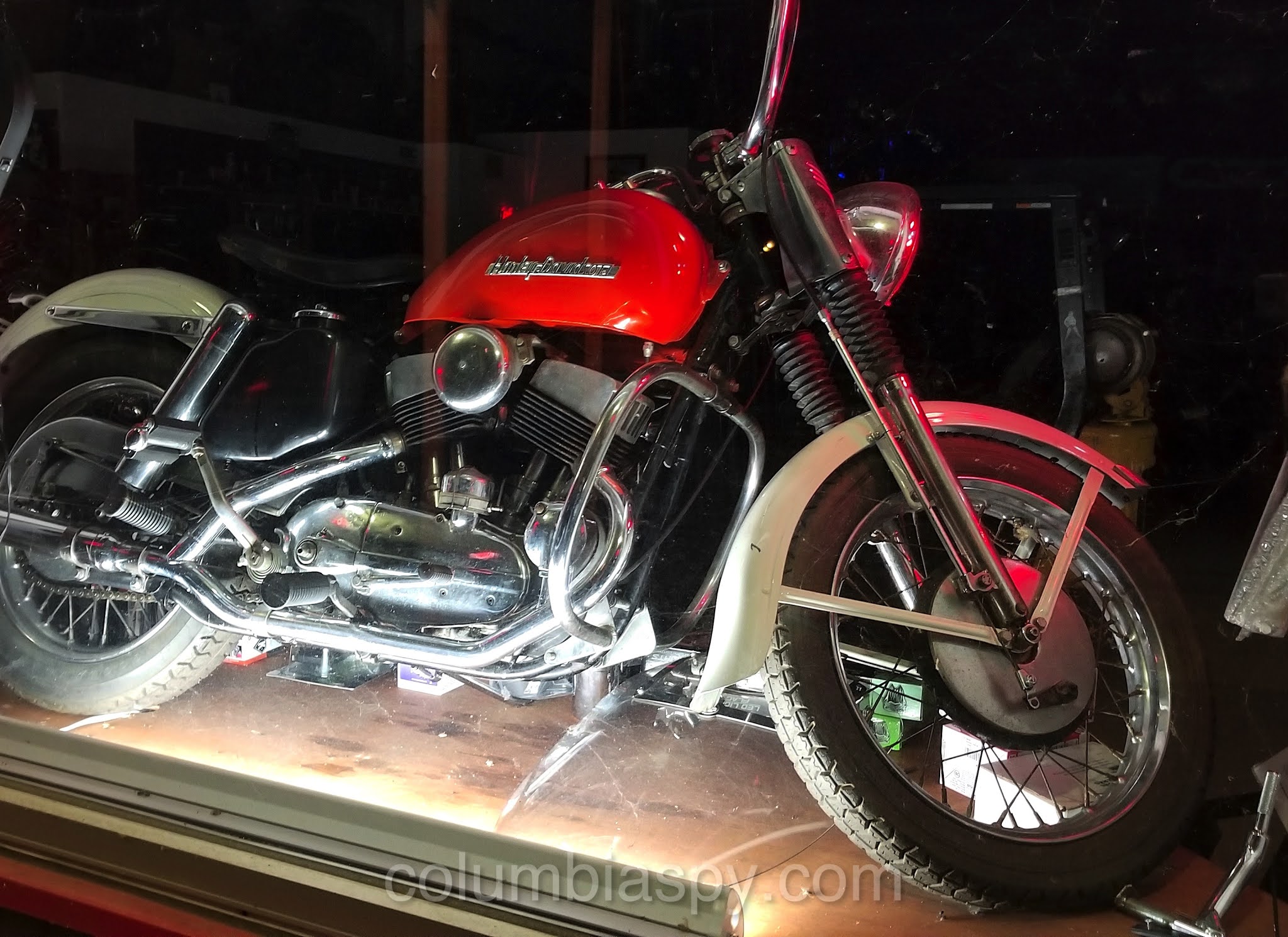 But here are some Harleys on display at the Cycle Den to get one’s mind off things: