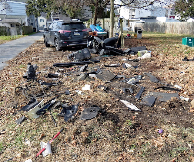 Did a car explode in this backyard?