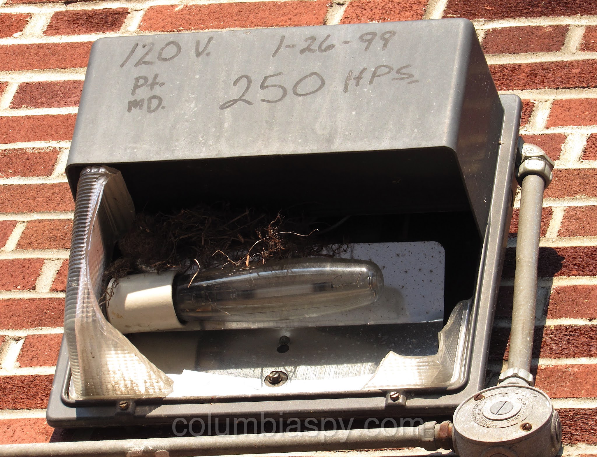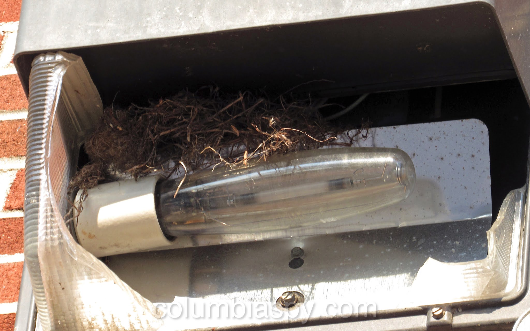 The fixture holds a bird’s nest – warm and well protected.