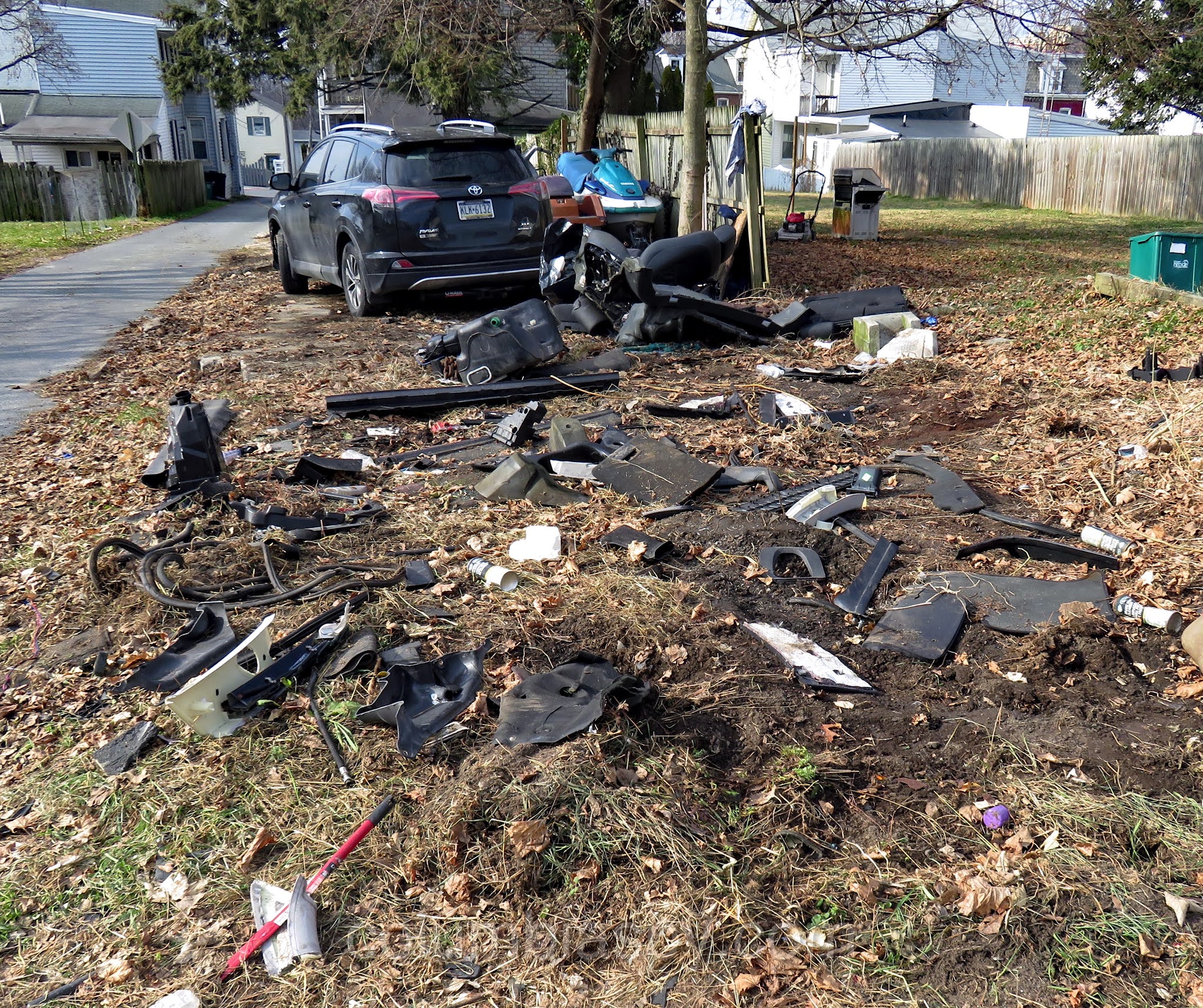 Did a car explode in this backyard?