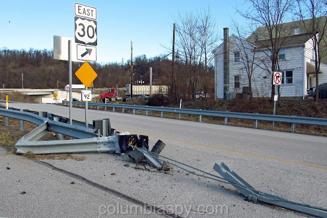 Mangled guard rail on the 441 bypass, near Cedar Street