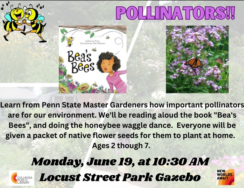 Pollinators!! at the Locust Street Park Gazebo – Monday, June 19 Share this: Share on X (Opens in new window) X Share on Facebook (Opens in new window) Facebook More Share on Bluesky (Opens in new window) Bluesky Share on X (Opens in new window) X Like Loading... Related