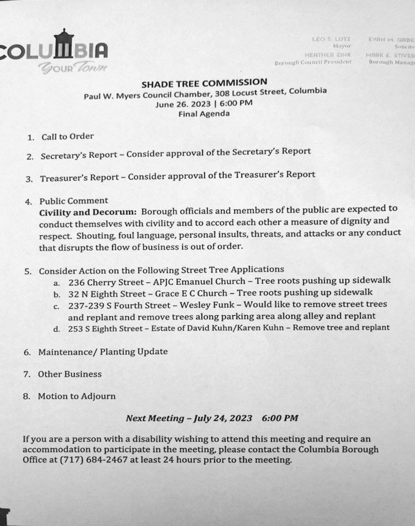 Agenda – Shade Tree Commission Meeting – June 26, 2023 Share this: Share on X (Opens in new window) X Share on Facebook (Opens in new window) Facebook More Share on Bluesky (Opens in new window) Bluesky Share on X (Opens in new window) X Like Loading... Related