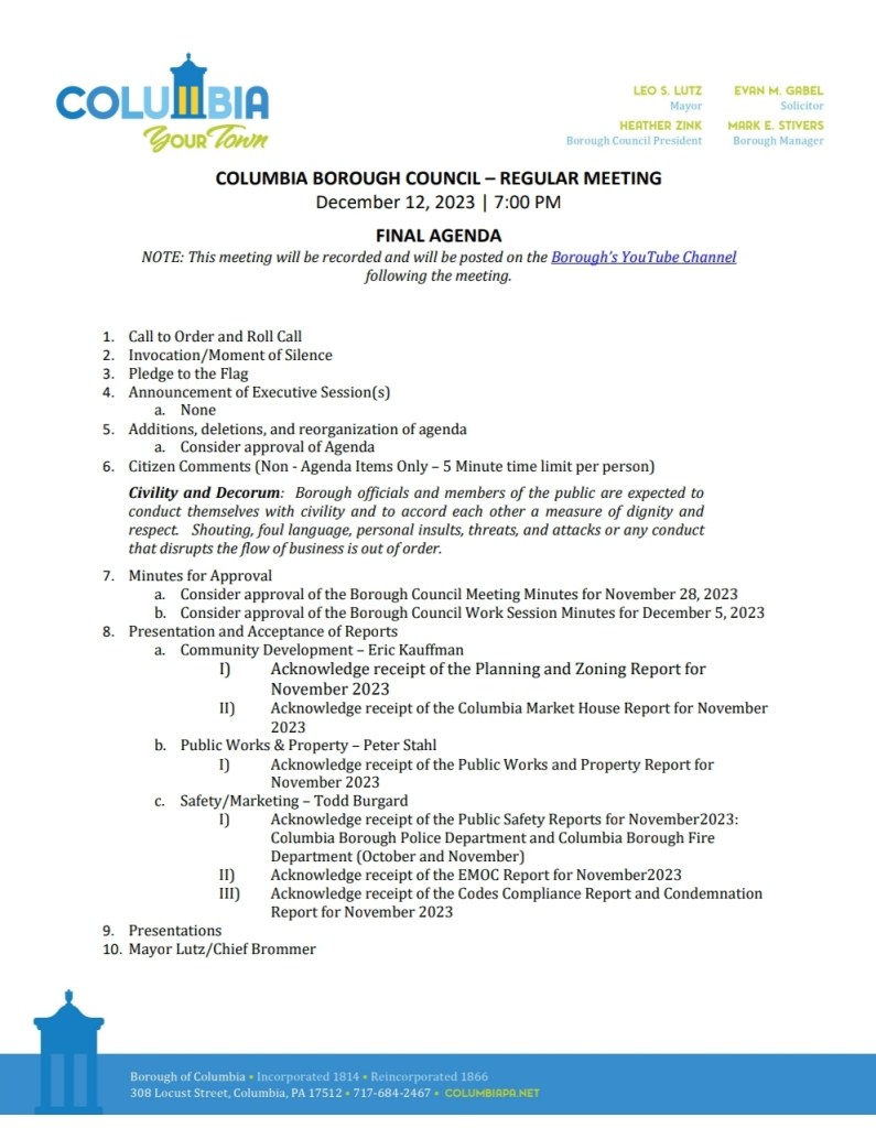 When: Columbia school board reorganization and committee meeting, Dec. 5.