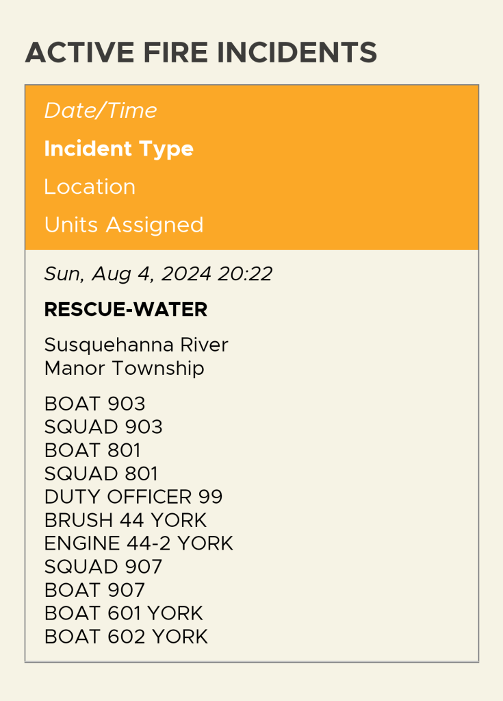 Manor Township emergency personnel (and others) received a call at 8:22 p.m. regarding a vehicle in the river in Windsor Township. Officers discovered a 2021 BMW X5 submerged in the water. The driver had driven down a public ramp near Lock 2 and ended up in the river on the York County side.