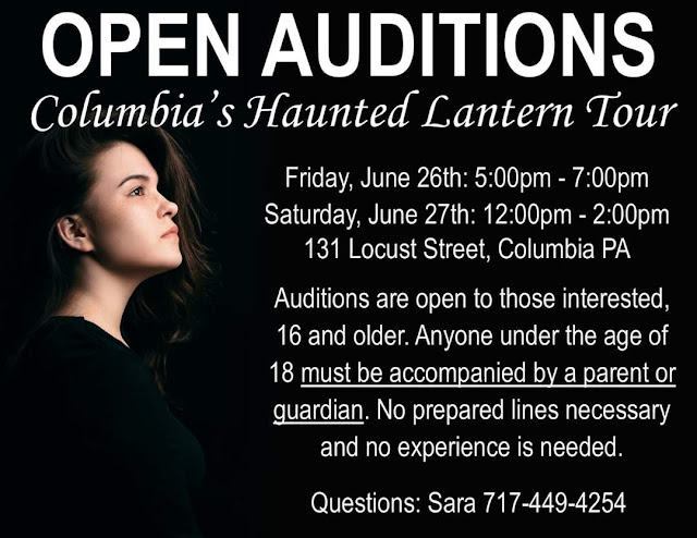 Open Auditions for Columbia's Haunted Lantern Tour being held this coming Friday and Saturday, June 26 & 27