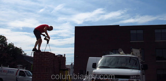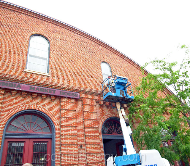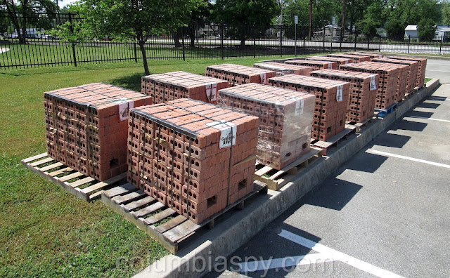 These bricks appeared at the parking lot at the bottom of Locust Street earlier this week. Some residents were concerned that they were placed there to entice looters to use them during protests. There are no reports of that happening. The bricks were intended for the Market House construction project and were later delivered to the site.